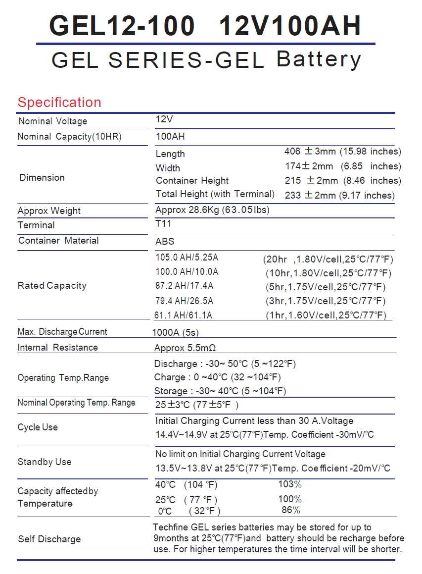 Solar battery 12V 100AH Lead Acid Gel Battery off grid